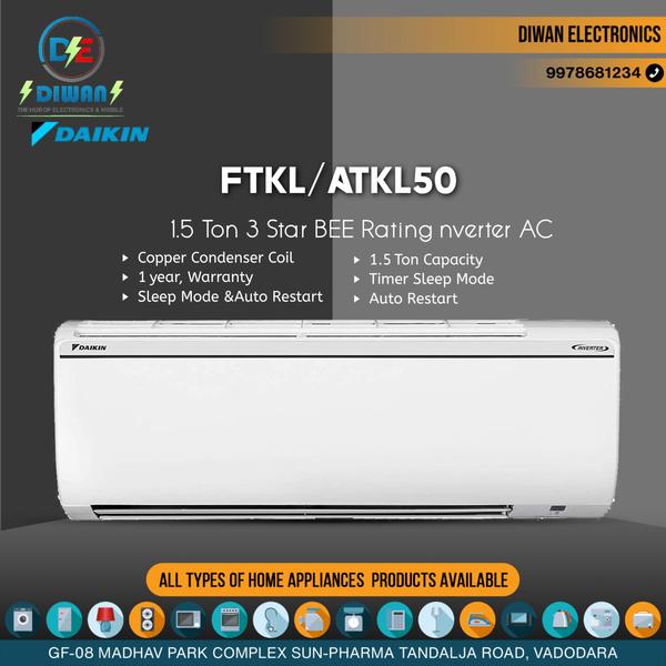 Daikin 1.5 Ton 3 Star Inverter AC – Available at Diwan Electronics, Vadodara